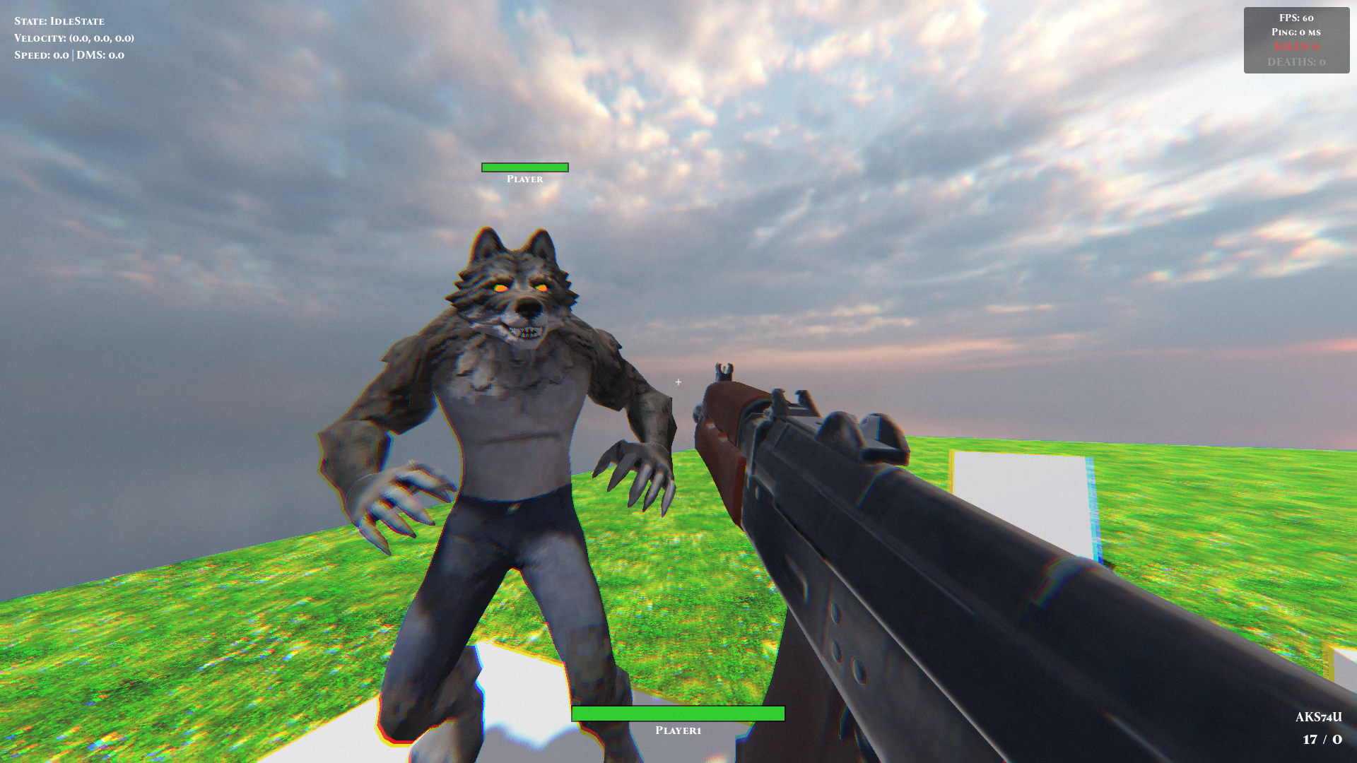 Asymmetrical PVP game. Play as a werewolf or part of a mercenary gang. This is an early netcode test, no map or soldier models included.
